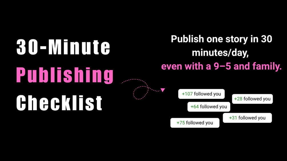 This checklist shows you the exact 30-minute flow I use to draft, edit, and publish 3+ stories a week.